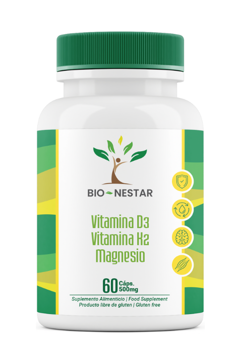 La combinación de Vitamina D3, K2 y Citrato de Magnesio es un poderoso aliado para la salud ósea, cardiovascular y muscular. D3 mejora la absorción del calcio, K2 lo dirige a los huesos y evita su acumulación en arterias, mientras que el magnesio regula estos procesos y mejora la función muscular y nerviosa.